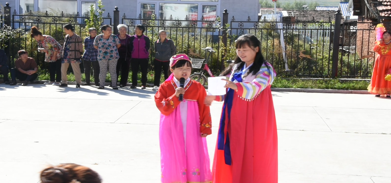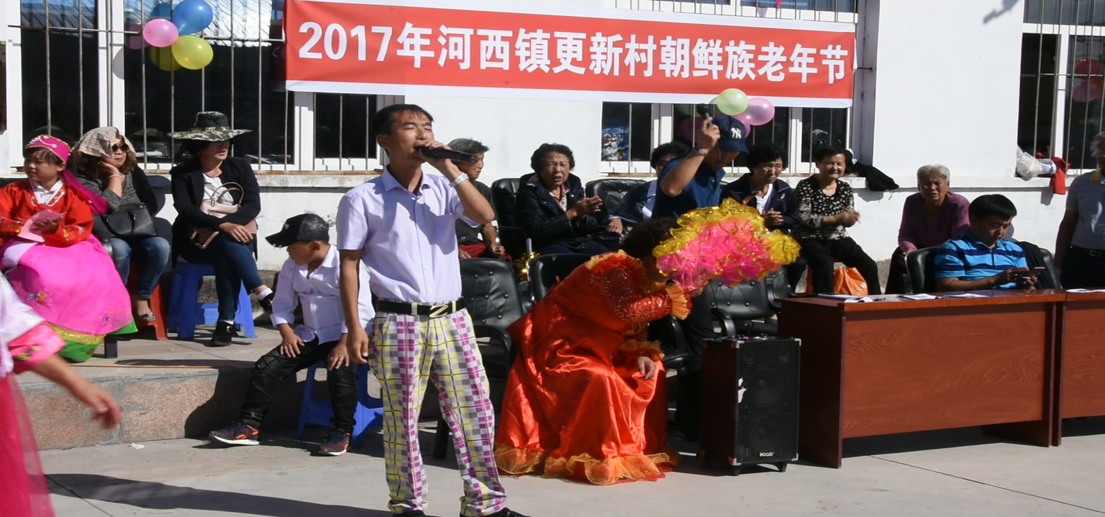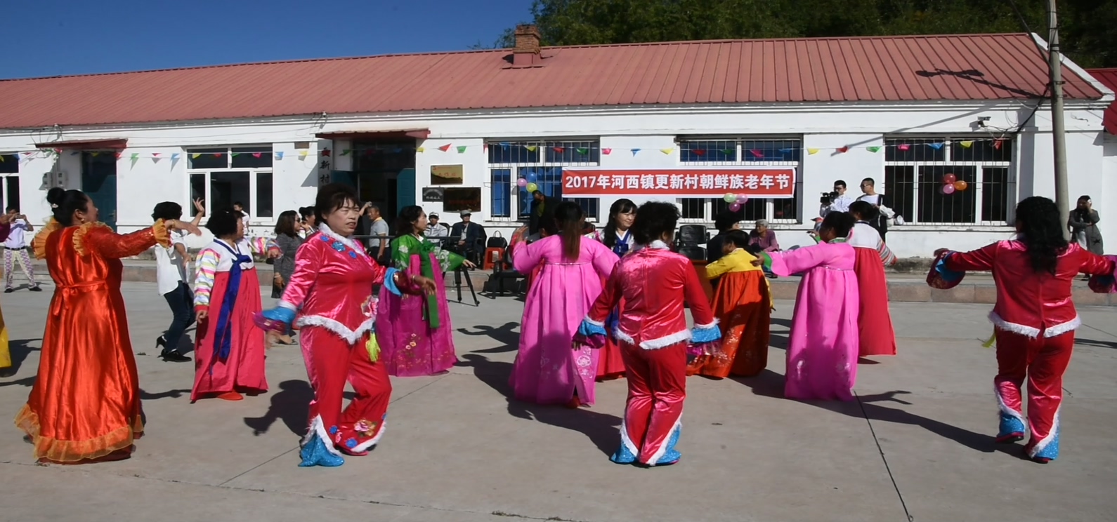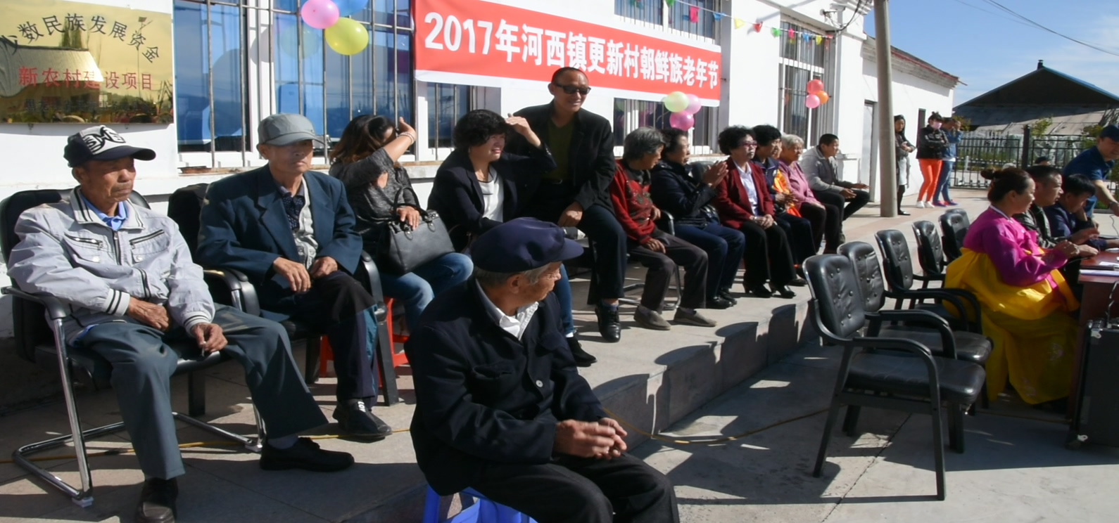 这天上午,更新村委会大院热闹非常,全村在家65周岁以上的20多名老人欢聚一堂,一起欣赏村里年轻人和儿童专门为他们献上的爱看、爱听的舞蹈、歌曲。年青人和小孩都精神饱满,以优美的舞姿、精彩的独唱和感恩的诗朗诵,表现着敬老爱老之情;气氛到最热烈之时,在场的镇、村干部和老人们一同跳起了鲜族舞,让老人们更加感受到了幸福的欢乐之情。