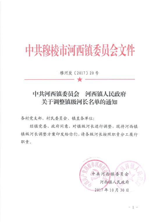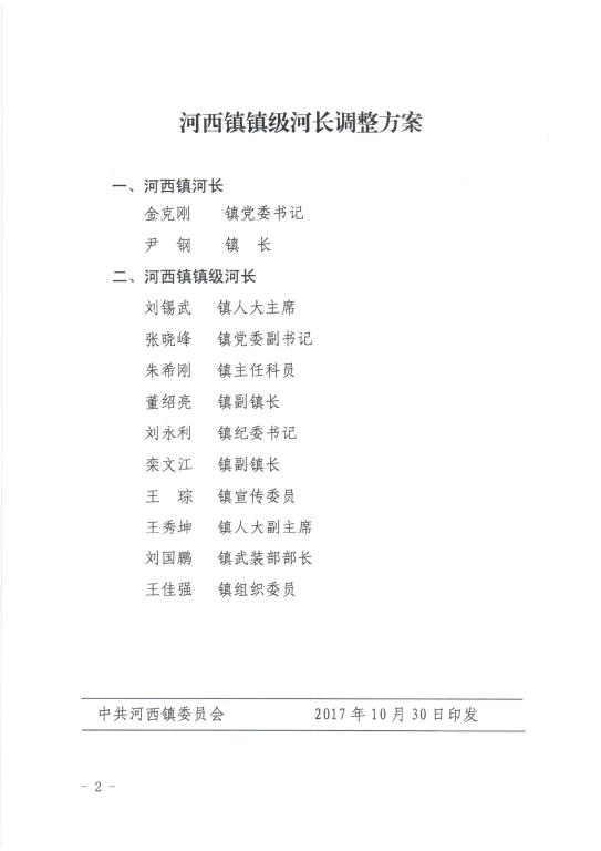 中共河西镇委员会 河西镇人民政府关于调整镇级河长名单的通知